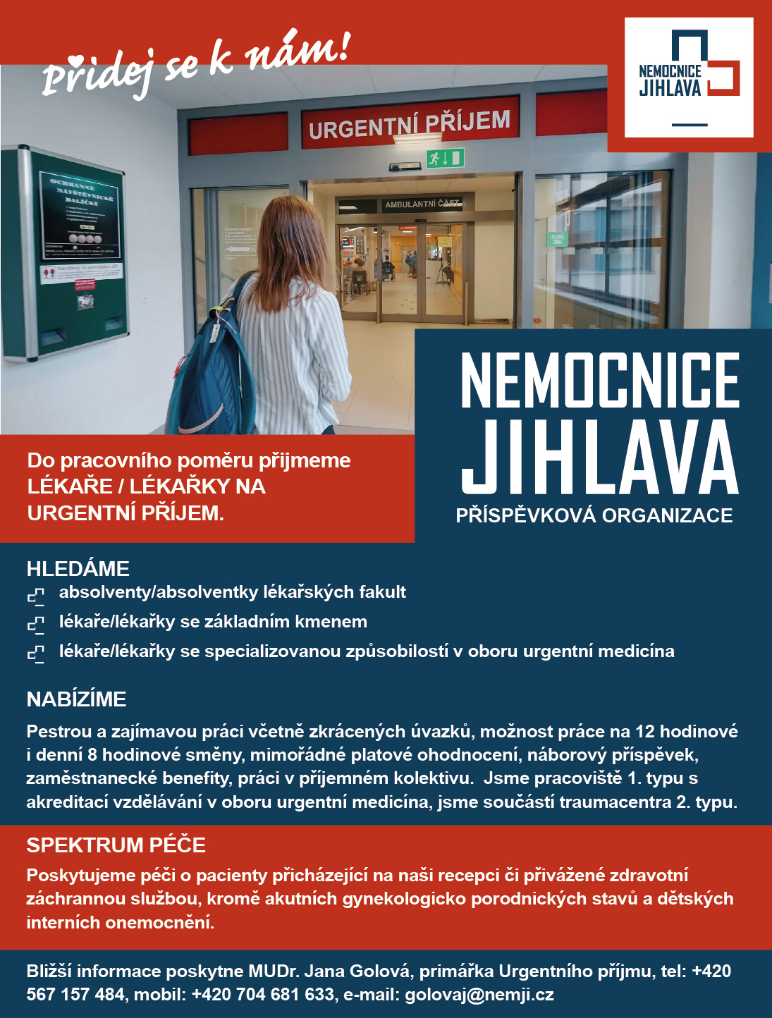 Do pracovního poměru přijmeme LÉKAŘE / LÉKAŘKY NA URGENTNÍ PŘÍJEM