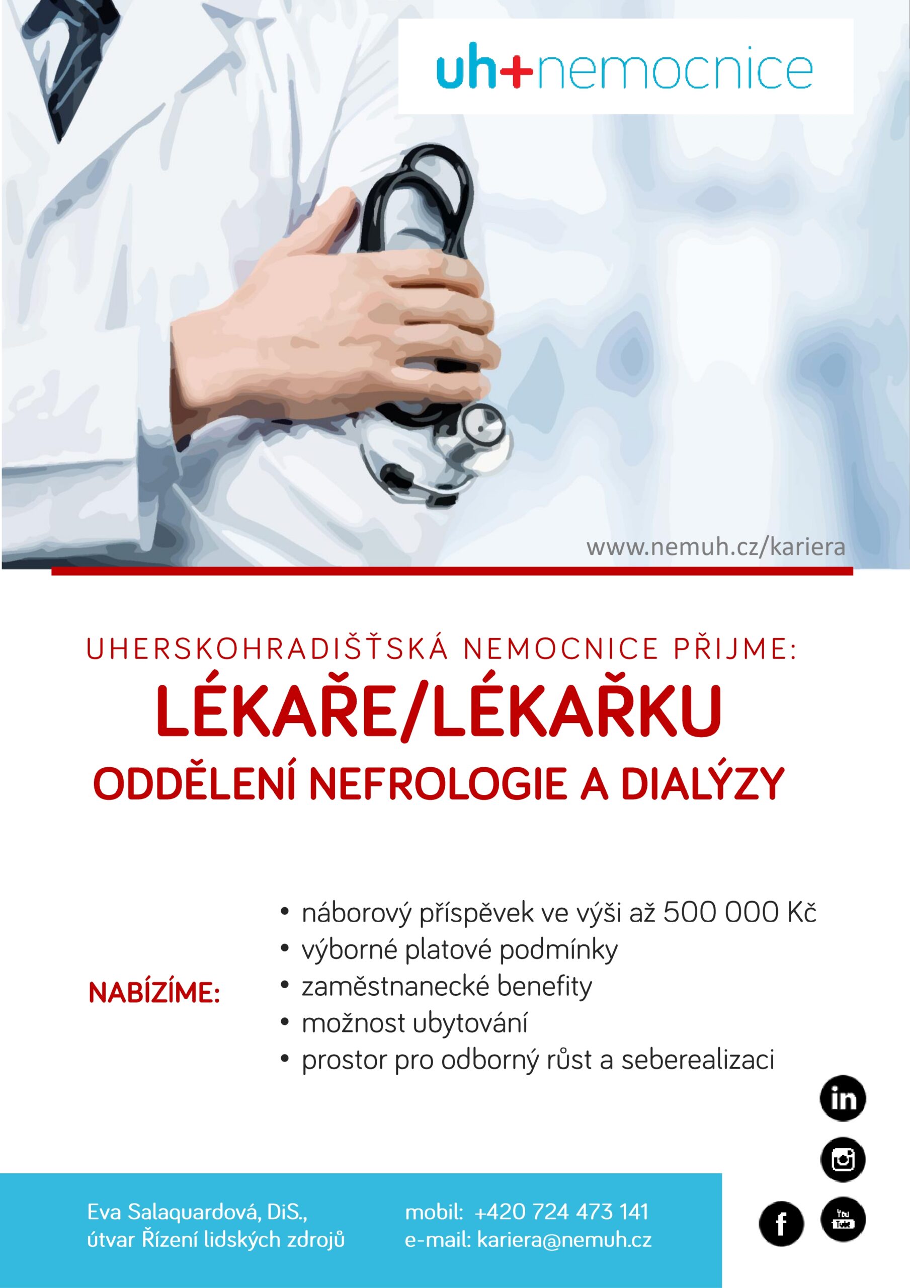 Uherskohradišťská nemocnice přijme lékaře/lékařku na oddělení nefrologie a dialýzy